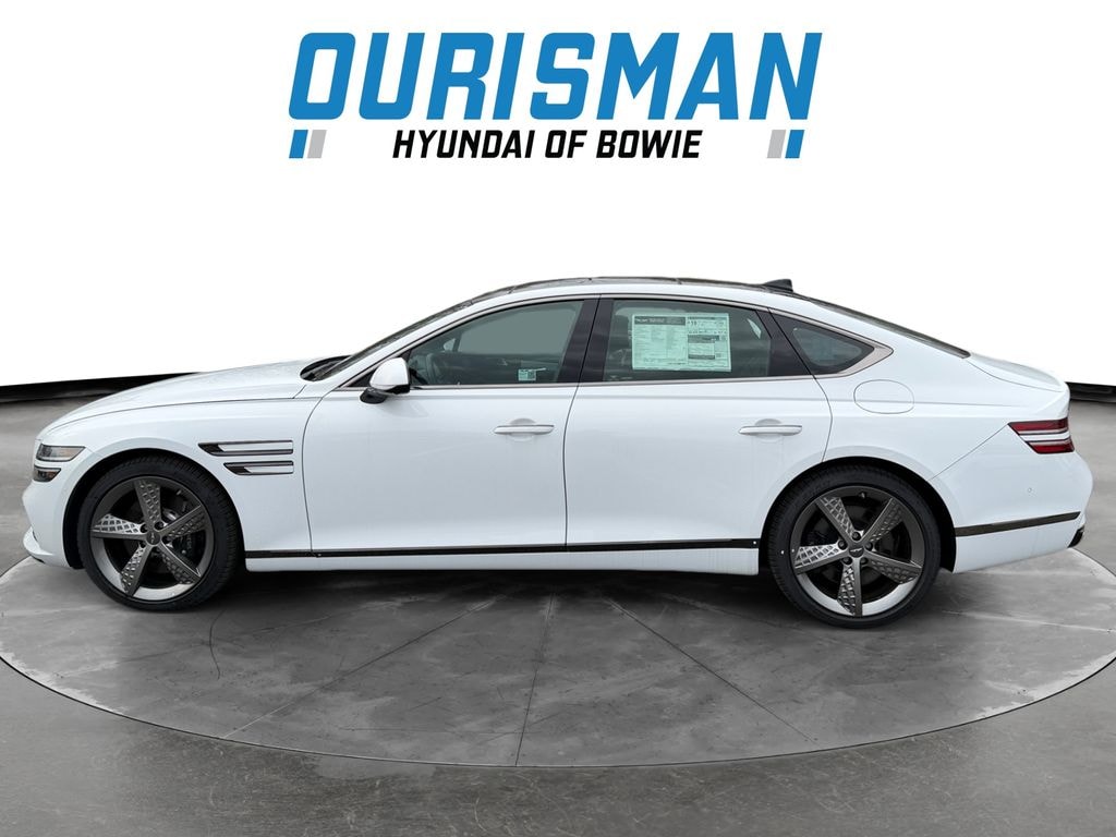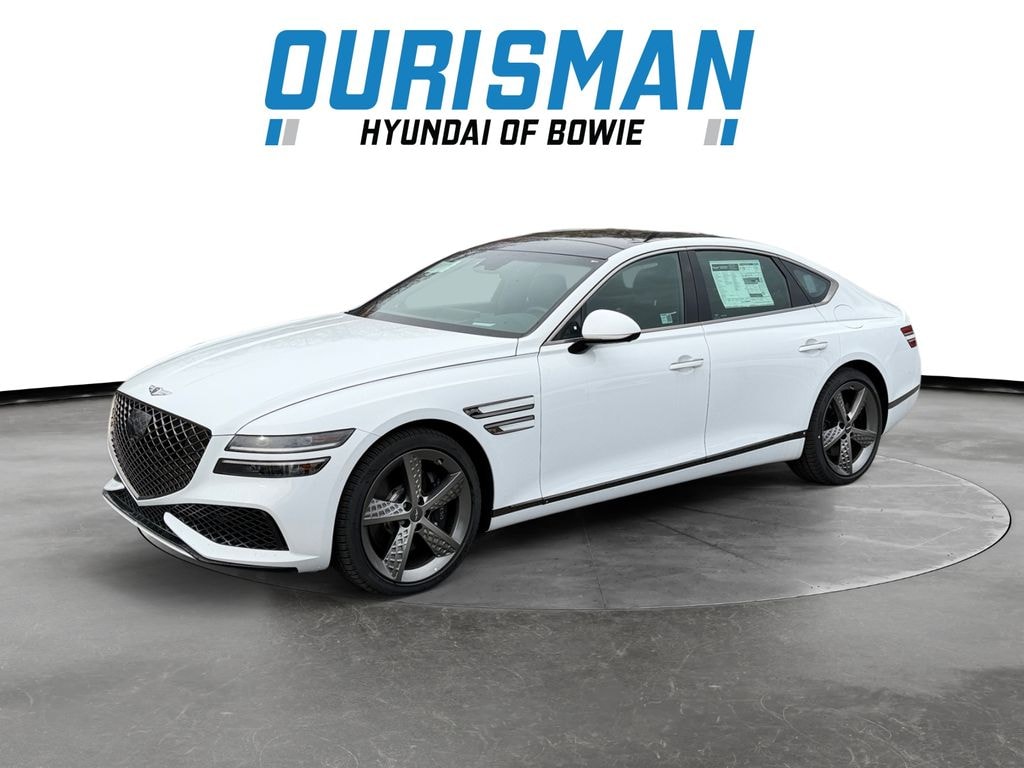 Sport Advanced Package (3-Zone Climate Control, Advanced Rear Occupant Alert, Blind-Spot View Monitor, Driver Ergo Motion Seat, Driver Seat Power Bolster & Cushion Extension, Front Passenger Seat Walk-In Device, Genesis Digital Key, Option Group 04, Power Rear Sunshades, Radio: AM/FM/HD/SiriusXM Lexicon Audio System, Surround View Monitor, and Wireless Phone Charger), Sport Prestige Package (12.3" 3D Digital Instrument Cluster), 12 Speakers - Bose Audio, 4-Wheel Disc Brakes, ABS brakes, Adaptive suspension, Air Conditioning, Alloy wheels, AM/FM radio: SiriusXM, Android Auto & Apple CarPlay, Anti-whiplash front head restraints, Auto High-beam Headlights, Auto tilt-away steering wheel, Auto-dimming door mirrors, Auto-dimming Rear-View mirror, Automatic temperature control, Bumpers: body-color, Compass, Cruise Control, Delay-off headlights, Driver door bin, Driver vanity mirror, Dual front impact airbags, Dual front side impact airbags, Electronic Stability Control, Emergency communication system: Genesis Connected Services, Exterior Parking Camera Rear, Four wheel independent suspension, Front anti-roll bar, Front Bucket Seats, Front Center Armrest, Front dual zone A/C, Front reading lights, Fully automatic headlights, Garage door transmitter: HomeLink, Heated & Ventilated Front Bucket Seats, Heated door mirrors, Heated front seats, Heated rear seats, Heated steering wheel, Illuminated entry, Knee airbag, Leather Seating Surfaces, Leather steering wheel, Low tire pressure warning, Memory seat, Navigation System, Occupant sensing airbag, Outside temperature display, Overhead airbag, Overhead console, Panic alarm, Passenger door bin, Passenger vanity mirror, Power door mirrors, Power driver seat, Power moonroof, Power passenger seat, Power steering, Power windows, Radio data system, Radio: AM/FM/HD/SiriusXM Audio System, Rain sensing wipers, Rear anti-roll bar, Rear reading lights, Rear seat center armrest, Rear side impact airbag, Rear window defroster, Remote keyless entry, Security system, Speed-sensing steering, Speed-Sensitive Wipers, Steering wheel memory, Steering wheel mounted audio controls, Tachometer, Telescoping steering wheel, Tilt steering wheel, Traction control, Trip computer, Turn signal indicator mirrors, Variably intermittent wipers, and Ventilated front seats.