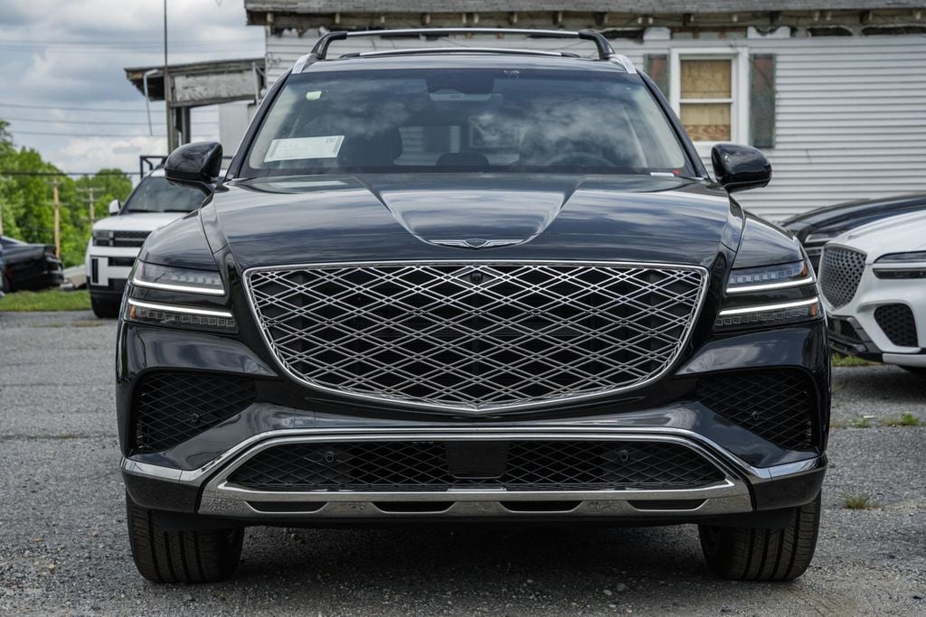 Option Group 01, 18 Speakers, 3rd row seats: split-bench, 4-Wheel Disc Brakes, ABS brakes, Adaptive suspension, Air Conditioning, Alloy wheels, AM/FM radio: SiriusXM, Anti-whiplash front head restraints, Auto High-beam Headlights, Auto tilt-away steering wheel, Auto-dimming door mirrors, Auto-dimming Rear-View mirror, Automatic temperature control, Brake assist, Bumpers: body-color, Cargo Net, Compass, Cruise Control, Delay-off headlights, Driver door bin, Driver vanity mirror, Dual front impact airbags, Dual front side impact airbags, Electronic Stability Control, Emergency communication system: Genesis Connected Services, Exterior Parking Camera Rear, Four wheel independent suspension, Front anti-roll bar, Front Bucket Seats, Front Center Armrest, Front dual zone A/C, Front reading lights, Fully automatic headlights, Garage door transmitter: HomeLink, Genuine wood console insert, Genuine wood dashboard insert, Genuine wood door panel insert, Heads-Up Display, Heated & Ventilated Front Bucket Seats, Heated door mirrors, Heated front seats, Heated rear seats, Heated steering wheel, Illuminated entry, Knee airbag, Leather Seating Surfaces, Leather steering wheel, Low tire pressure warning, Memory seat, Navigation System, Occupant sensing airbag, Outside temperature display, Overhead airbag, Overhead console, Panic alarm, Passenger door bin, Passenger vanity mirror, Power door mirrors, Power driver seat, Power Liftgate, Power moonroof, Power passenger seat, Power steering, Power windows, Radio data system, Radio: AM/FM/SiriusXM/HD Bang & Olufsen Sound Sys, Rain sensing wipers, Rear air conditioning, Rear anti-roll bar, Rear reading lights, Rear seat center armrest, Rear side impact airbag, Rear window defroster, Rear window wiper, Reclining 3rd row seat, Remote keyless entry, Roof Rack Cross Bars, Security system, Speed-sensing steering, Speed-Sensitive Wipers, Split folding rear seat, Spoiler, Steering wheel memory, Steering wheel mounted audio controls, Tachometer, Telescoping steering wheel, Tilt steering wheel, Traction control, Trip computer, Turn signal indicator mirrors, Variably intermittent wipers, Ventilated front seats, and Wheels: 20" x 8.5J Dark Gray Matte Alloy.