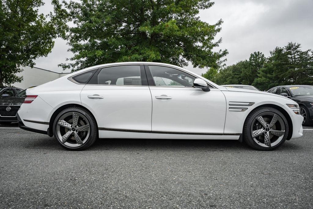 Option Group 01, 18 Speakers, 4-Wheel Disc Brakes, ABS brakes, Adaptive suspension, Air Conditioning, Alloy wheels, AM/FM radio: SiriusXM, Android Auto & Apple CarPlay, Anti-whiplash front head restraints, Auto High-beam Headlights, Auto tilt-away steering wheel, Auto-dimming door mirrors, Auto-dimming Rear-View mirror, Automatic temperature control, Bumpers: body-color, Compass, Cruise Control, Delay-off headlights, Driver door bin, Driver vanity mirror, Dual front impact airbags, Dual front side impact airbags, Electronic Stability Control, Emergency communication system: Genesis Connected Services, Exterior Parking Camera Rear, First Aid Kit, Four wheel independent suspension, Front anti-roll bar, Front Bucket Seats, Front Center Armrest, Front dual zone A/C, Front reading lights, Fully automatic headlights, Garage door transmitter: HomeLink, Heated & Ventilated Front Bucket Seats, Heated door mirrors, Heated front seats, Heated rear seats, Heated steering wheel, Illuminated entry, Knee airbag, Leather Seating Surfaces, Leather steering wheel, Low tire pressure warning, Memory seat, Mudguards, Navigation System, NFC Key Card, Occupant sensing airbag, Outside temperature display, Overhead airbag, Overhead console, Panic alarm, Passenger door bin, Passenger vanity mirror, Power door mirrors, Power driver seat, Power moonroof, Power passenger seat, Power steering, Power windows, Radio data system, Radio: AM/FM/HD Bang & Olufsen Prem Audio System, Rain sensing wipers, Rear air conditioning, Rear anti-roll bar, Rear reading lights, Rear seat center armrest, Rear side impact airbag, Rear Window Blind, Rear window defroster, Remote keyless entry, Security system, Speed-sensing steering, Speed-Sensitive Wipers, Steering wheel memory, Steering wheel mounted audio controls, Tachometer, Telescoping steering wheel, Tilt steering wheel, Traction control, Trip computer, Turn signal indicator mirrors, Variably intermittent wipers, Ventilated front seats, and Wheels: 20" x 8.5J Fr & 20" x 9.5J Rr Sport Alloy.