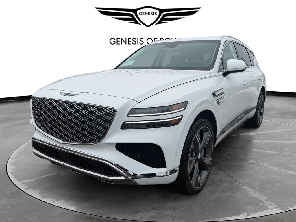 18 Speakers, 3rd row seats: split-bench, 4-Wheel Disc Brakes, ABS brakes, Adaptive suspension, Air Conditioning, Alloy wheels, AM/FM radio: SiriusXM, Anti-whiplash front head restraints, Auto High-beam Headlights, Auto tilt-away steering wheel, Auto-dimming door mirrors, Auto-dimming Rear-View mirror, Automatic temperature control, Brake assist, Bumpers: body-color, Compass, Cruise Control, Delay-off headlights, Driver door bin, Driver vanity mirror, Dual front impact airbags, Dual front side impact airbags, Electronic Stability Control, Emergency communication system: Genesis Connected Services, Exterior Parking Camera Rear, Four wheel independent suspension, Front anti-roll bar, Front Bucket Seats, Front Center Armrest, Front dual zone A/C, Front reading lights, Fully automatic headlights, Garage door transmitter: HomeLink, Genuine wood console insert, Genuine wood dashboard insert, Genuine wood door panel insert, Heads-Up Display, Heated and Ventilated Front Bucket Seats, Heated door mirrors, Heated front seats, Heated rear seats, Heated steering wheel, Illuminated entry, Knee airbag, Leather Seating Surfaces, Leather steering wheel, Low tire pressure warning, Memory seat, Navigation System, Occupant sensing airbag, Outside temperature display, Overhead airbag, Overhead console, Panic alarm, Passenger door bin, Passenger vanity mirror, Power door mirrors, Power driver seat, Power Liftgate, Power moonroof, Power passenger seat, Power steering, Power windows, Radio data system, Radio: AM/FM/HD Bose Premium Sound System, Rain sensing wipers, Rear air conditioning, Rear anti-roll bar, Rear reading lights, Rear seat center armrest, Rear side impact airbag, Rear window defroster, Rear window wiper, Reclining 3rd row seat, Remote keyless entry, Security system, Speed-sensing steering, Speed-Sensitive Wipers, Split folding rear seat, Spoiler, Steering wheel memory, Steering wheel mounted audio controls, Tachometer, Telescoping steering wheel, Tilt steering wheel, Traction control, Trip computer, Turn signal indicator mirrors, Variably intermittent wipers, Ventilated front seats, and Wheels: 22" x 9.5J Dark Gray Matte Alloy.