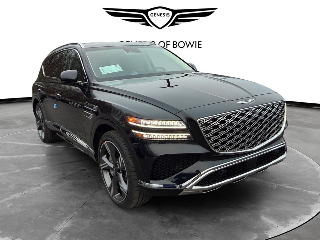 Option Group 01, 18 Speakers, 3rd row seats: split-bench, 4-Wheel Disc Brakes, ABS brakes, Adaptive suspension, Air Conditioning, Alloy wheels, AM/FM radio: SiriusXM, Anti-whiplash front head restraints, Auto High-beam Headlights, Auto tilt-away steering wheel, Auto-dimming door mirrors, Auto-dimming Rear-View mirror, Automatic temperature control, Brake assist, Bumpers: body-color, Compass, Cruise Control, Delay-off headlights, Driver door bin, Driver vanity mirror, Dual front impact airbags, Dual front side impact airbags, Electronic Stability Control, Emergency communication system: Genesis Connected Services, Exterior Parking Camera Rear, Four wheel independent suspension, Front anti-roll bar, Front Bucket Seats, Front Center Armrest, Front dual zone A/C, Front reading lights, Fully automatic headlights, Garage door transmitter: HomeLink, Genuine wood console insert, Genuine wood dashboard insert, Genuine wood door panel insert, Heads-Up Display, Heated and Ventilated Front Bucket Seats, Heated door mirrors, Heated front seats, Heated rear seats, Heated steering wheel, Illuminated entry, Knee airbag, Leather steering wheel, Low tire pressure warning, Memory seat, Nappa Leather Seating Surfaces, Navigation System, Occupant sensing airbag, Outside temperature display, Overhead airbag, Overhead console, Panic alarm, Passenger door bin, Passenger vanity mirror, Power door mirrors, Power driver seat, Power Liftgate, Power moonroof, Power passenger seat, Power steering, Power windows, Radio data system, Radio: AM/FM/HD Bose Premium Sound System, Rain sensing wipers, Rear air conditioning, Rear anti-roll bar, Rear reading lights, Rear seat center armrest, Rear side impact airbag, Rear window defroster, Rear window wiper, Reclining 3rd row seat, Remote keyless entry, Security system, Speed-sensing steering, Speed-Sensitive Wipers, Split folding rear seat, Spoiler, Steering wheel memory, Steering wheel mounted audio controls, Tachometer, Telescoping steering wheel, Tilt steering wheel, Traction control, Trip computer, Turn signal indicator mirrors, Variably intermittent wipers, Ventilated front seats, Ventilated rear seats, and Wheels: 22" x 9.5J Dark Gray Matte Alloy.