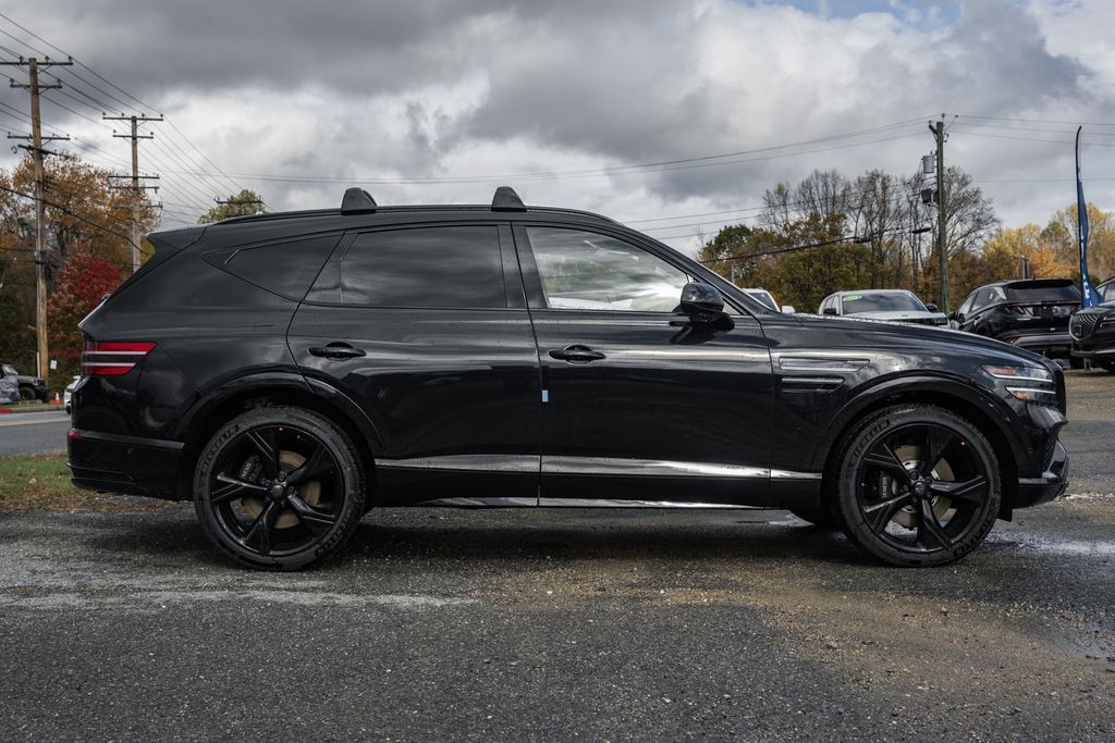 Option Group 01, 18 Speakers, 4-Wheel Disc Brakes, ABS brakes, Adaptive suspension, Air Conditioning, Alloy wheels, AM/FM radio: SiriusXM, Anti-whiplash front head restraints, Auto High-beam Headlights, Auto tilt-away steering wheel, Auto-dimming door mirrors, Auto-dimming Rear-View mirror, Automatic temperature control, Brake assist, Cargo Mat, Compass, Cruise Control, Delay-off headlights, Driver door bin, Driver vanity mirror, Dual front impact airbags, Dual front side impact airbags, Electronic Stability Control, Emergency communication system: Genesis Connected Services, Exterior Parking Camera Rear, Four wheel independent suspension, Fragrance Cartridge, Front anti-roll bar, Front Bucket Seats, Front Center Armrest, Front dual zone A/C, Front reading lights, Fully automatic headlights, Garage door transmitter: HomeLink, Genuine wood console insert, Genuine wood dashboard insert, Genuine wood door panel insert, Heads-Up Display, Heated and Ventilated Front Bucket Seats, Heated door mirrors, Heated front seats, Heated rear seats, Heated steering wheel, Illuminated entry, Knee airbag, Leather steering wheel, Low tire pressure warning, Memory seat, Nappa Leather Seating Surfaces, Navigation System, NFC Key Card, Occupant sensing airbag, Outside temperature display, Overhead airbag, Overhead console, Panic alarm, Passenger door bin, Passenger vanity mirror, Power door mirrors, Power driver seat, Power Liftgate, Power moonroof, Power passenger seat, Power steering, Power windows, Radio data system, Radio: AM/FM/HD Bose Premium Sound System, Rain sensing wipers, Rear air conditioning, Rear anti-roll bar, Rear dual zone A/C, Rear reading lights, Rear seat center armrest, Rear side impact airbag, Rear window defroster, Rear window wiper, Remote keyless entry, Roof Rack Cross Bars, Security system, Speed-sensing steering, Speed-Sensitive Wipers, Split folding rear seat, Spoiler, Steering wheel memory, Steering wheel mounted audio controls, Tachometer, Telescoping steering wheel, Tilt steering wheel, Traction control, Trip computer, Turn signal indicator mirrors, Variably intermittent wipers, Ventilated front seats, Ventilated rear seats, and Wheels: 22" x 9.5J Gloss Black Finish Alloy.